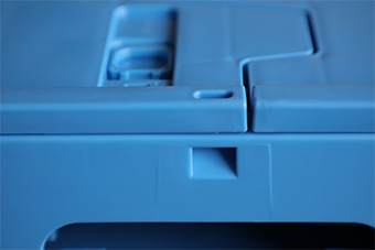●全箱體采用銷軸式設計,承載高達同類產品3倍以上,單箱可承載25-30KG,堆碼5層,不變形;